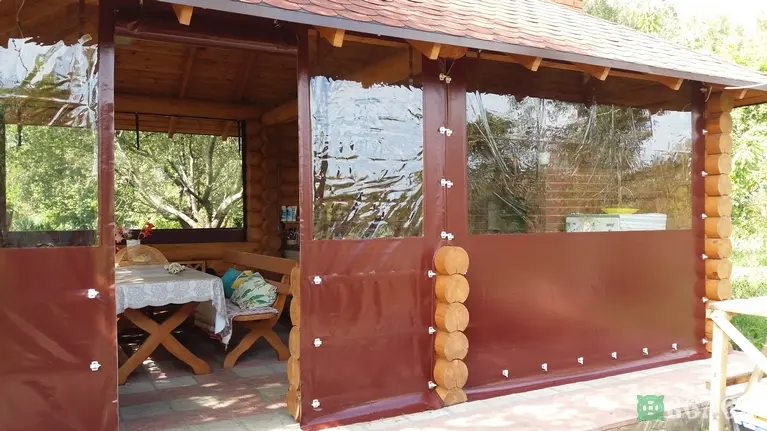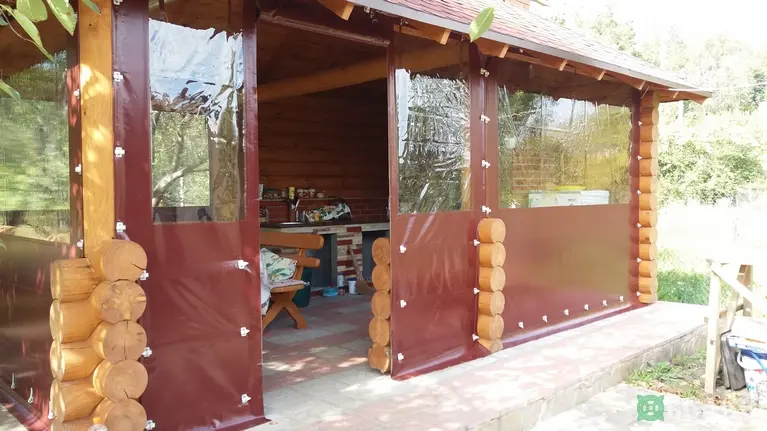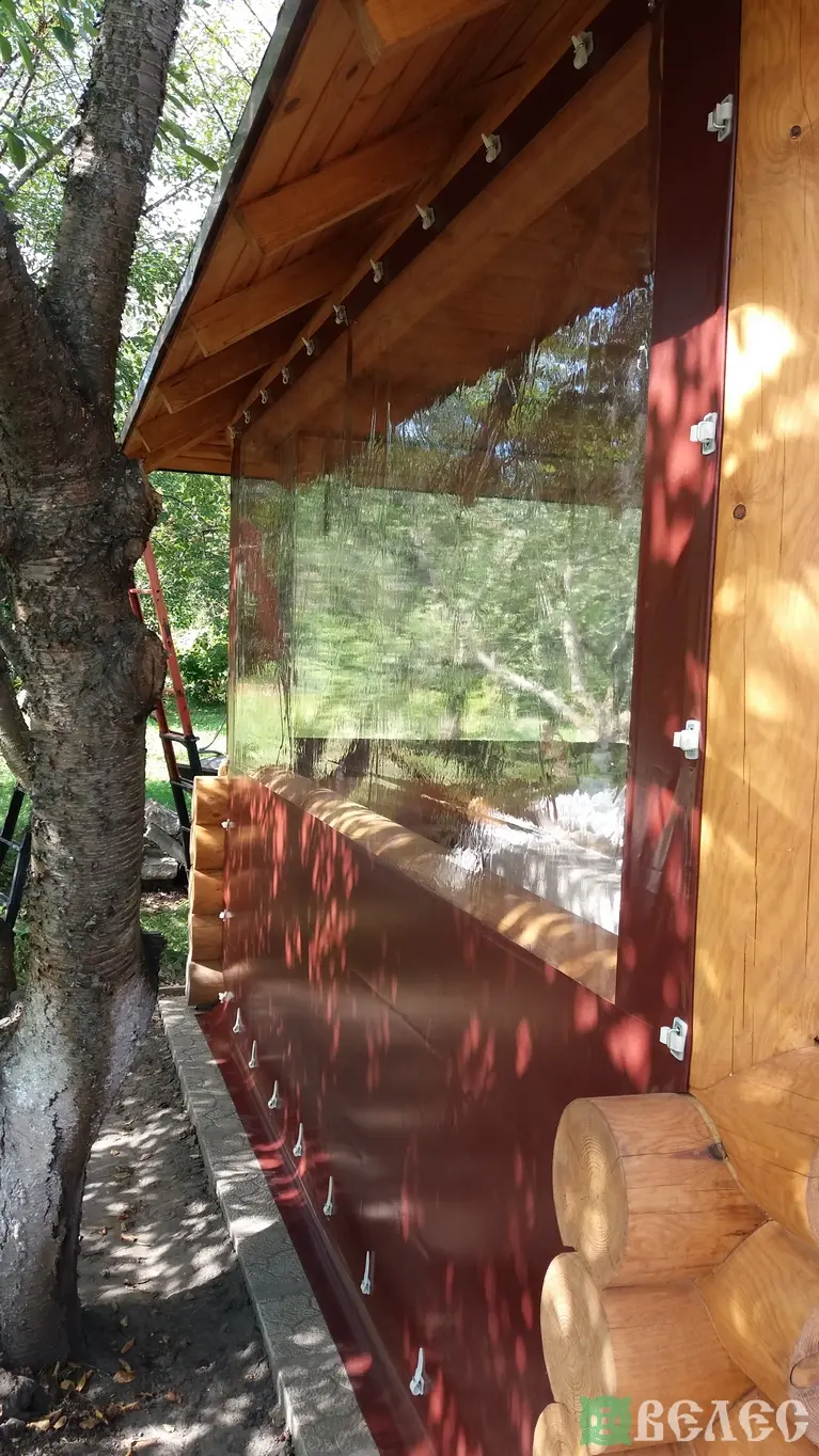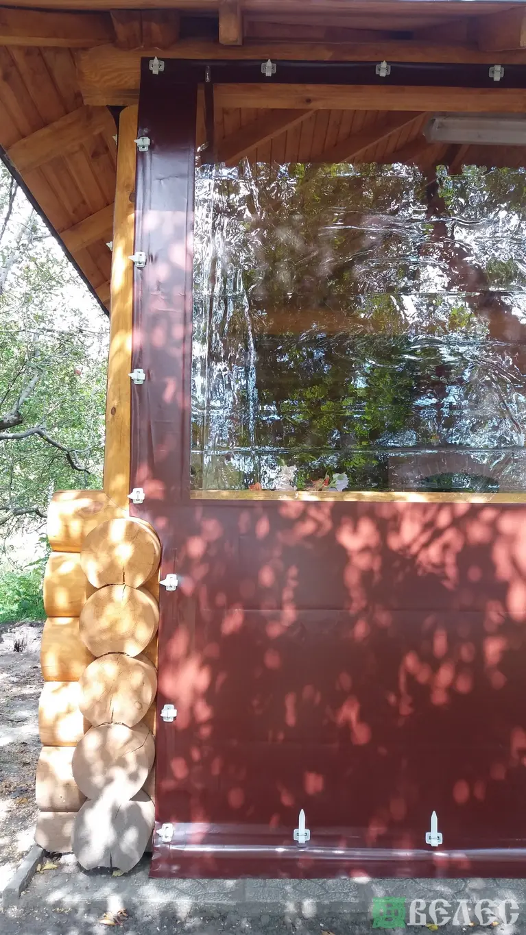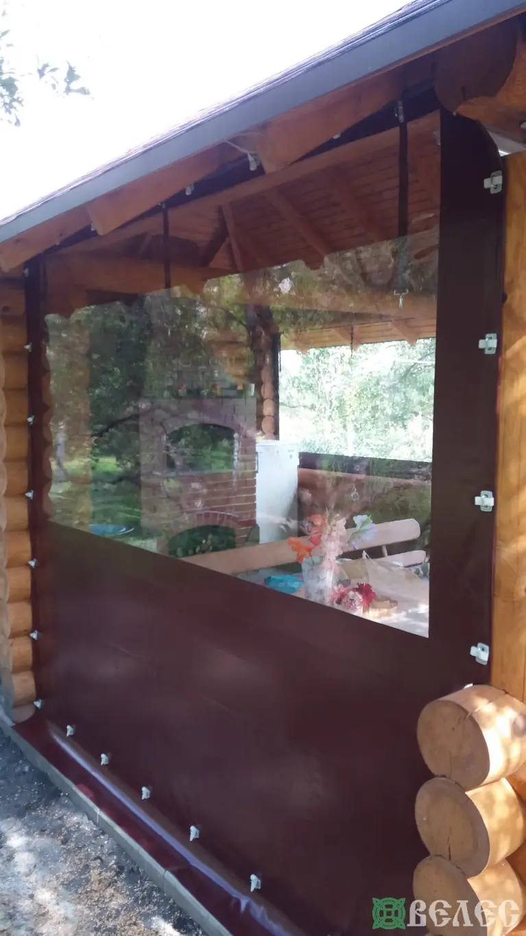Мягкие окна ПВХ на беседку из круглого бруса.