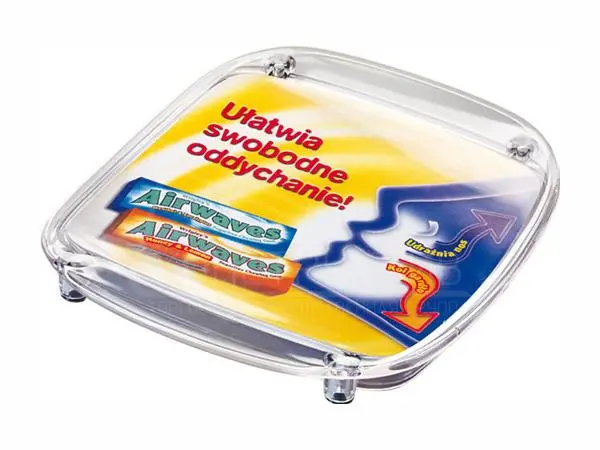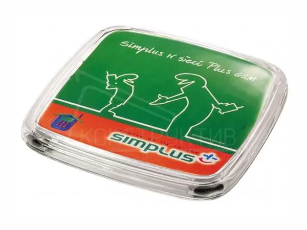 Бумажный вкладыш с рекламной информацией легко и надежно фиксируется между верхней и нижней частью монетницы.