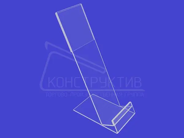 Акриловая подставка используется для выкладки и демонстрации сотовых телефонов и цифровой техники в витринах торгового зала, выделяя новизну и привлекательность рекламируемого товара.