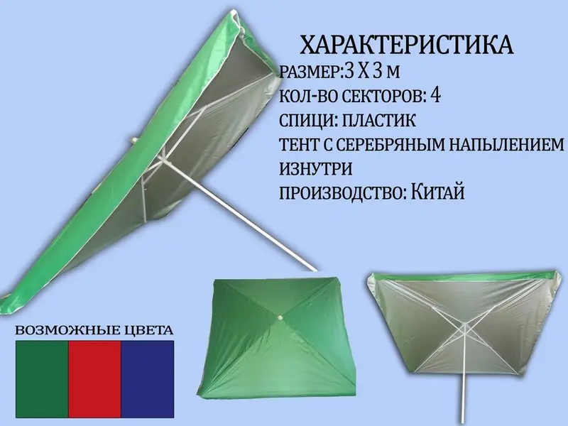 Зонт от солнца и дождя 3х3 метра.